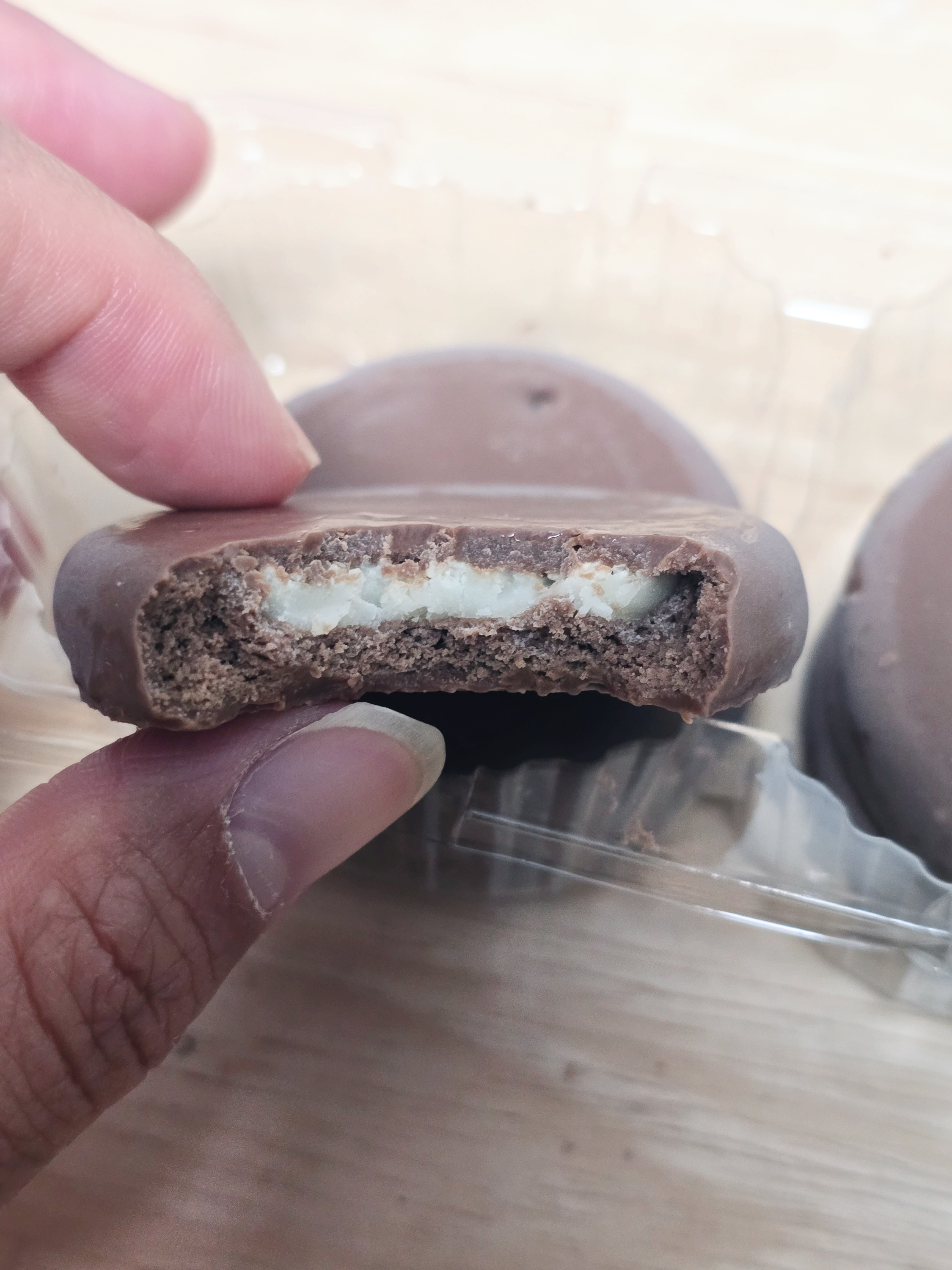 초콜릿쿠키는 거의 단맛이 없고 코코넛크림과 겉에 코팅된 초콜릿이 달아요